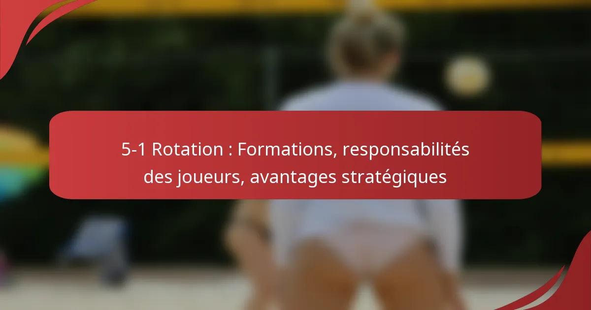 La rotation 5-1 est une formation tactique utilisée principalement dans des sports comme le volleyball et le basketball, où cinq joueurs sont positionnés dans un agencement spécifique tandis qu’un joueur tourne à travers différents rôles. Cette stratégie met l’accent sur les capacités offensives et défensives, permettant aux équipes de maximiser leurs forces et de s’adapter aux faiblesses des adversaires.
