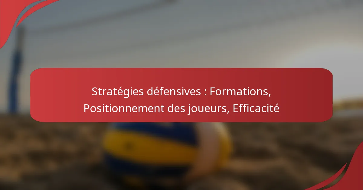 Les stratégies défensives dans le sport sont essentielles pour contrecarrer les tentatives de marquer des adversaires et maintenir le contrôle du jeu. En utilisant des formations comme le 4-4-2 ou le 3-5-2, les équipes peuvent optimiser le positionnement des joueurs pour améliorer leur efficacité défensive. En plaçant stratégiquement les joueurs, les équipes peuvent mieux répondre aux menaces offensives, intercepter des passes et minimiser les occasions de marquer pour leurs rivaux.