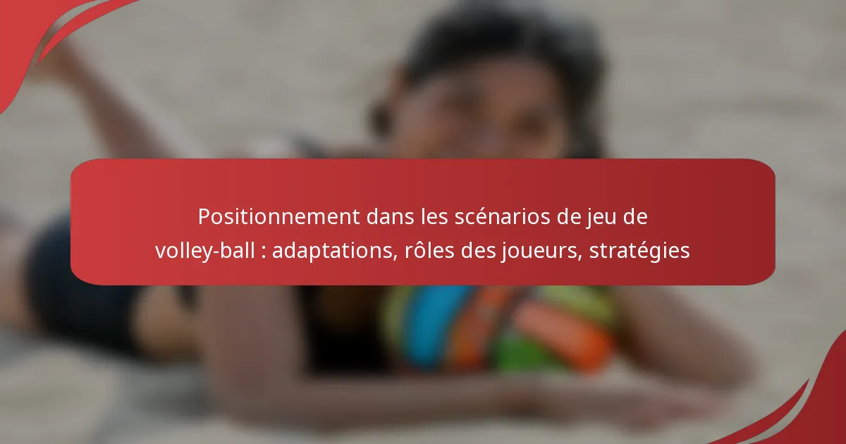 Dans le volley-ball, un positionnement efficace est crucial pour maximiser la performance de l’équipe et s’adapter à divers scénarios de jeu. Le rôle de chaque joueur est défini par des responsabilités spécifiques qui influencent à la fois les stratégies offensives et défensives, nécessitant des ajustements en fonction de la situation actuelle. Des facteurs tels que le score, le type de jeu et les forces de l’adversaire dictent comment les joueurs doivent se positionner pour optimiser le jeu.