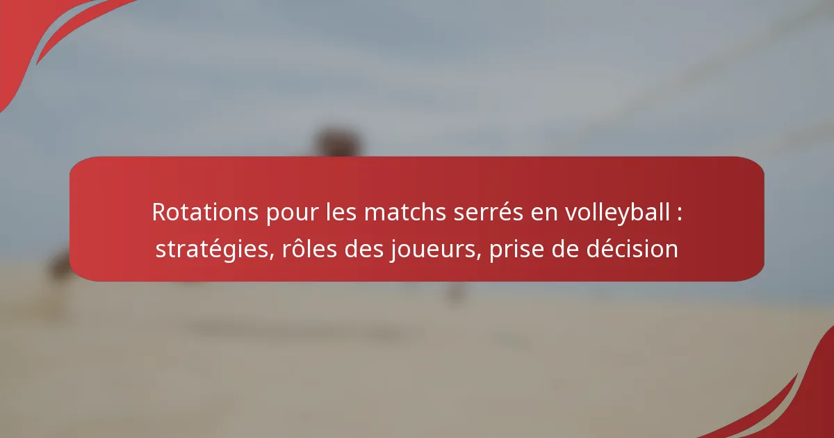 Dans les matchs de volley-ball serrés, des stratégies de rotation efficaces sont essentielles pour maximiser les forces de l’équipe et minimiser les faiblesses. Chaque joueur a un rôle spécifique qui contribue aux tactiques offensives et défensives, ce qui rend crucial pour les équipes de comprendre ces dynamiques. La prise de décision stratégique, informée par des observations en temps réel et la performance des joueurs, permet aux entraîneurs et aux joueurs d’adapter leurs rotations et d’améliorer leurs chances de succès.